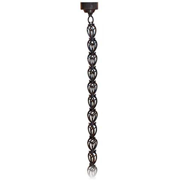 Regenketten reichen von 2 bis 4 Meter Länge und bestehen aus relativ großen Kettengliedern, die das Regenwasser vom Dach zum Boden leiten. Findest Du ein metallisches Rohr zu langweilig oder stört Dich der Abfluss-Sound von herkömmlichen Regenrinnen, ist eine Regenkette sowohl optisch als auch akustisch eine schöne Alternative. Als Kettenglieder eignen sich wasserfeste Objekte in Tropfenform, längliche Kettenglieder oder kleine Abtropfkelche mit Loch. Zum Beschweren hängt bei vielen Modellen ein zusätzliches Gewicht am Ende der Kette.